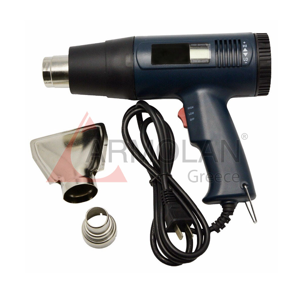 Πιστόλι θερμού αέρα 1800W ρυθμιζόμενης θερμοκρασίας με ψηφιακή οθόνη. Διαθέτει αμερικάνικη πρίζα και ευρωπαϊκό αντάπτορα.